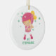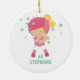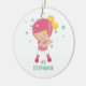Este ornamento de cerámica redondo tiene un jugador de softball el celebrar de un palo con algunas estrellas en el fondo. Usted puede personalizar el nombre y el número en la parte inferior. Gráficos por los diseños de Zenware