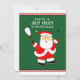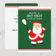 Tarjetas divertidas de Navidad con tema de squash con Santa jugador de squash de dibujos animados y línea humorística.