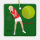 Un jugador de tenis rubio con un trenzado rubio claro y una plantilla para un nombre y una fecha para tener como un aguijón que hace un maravilloso regalo para el chica deportivo. El fondo, el estilo de texto y el color se pueden cambiar si se desea seleccionando en personalizar. Diseño original de Night Owl's Menagerie, 2016.