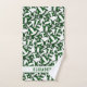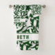 Este juego de toallas de patrón de voleibol fresco tiene un tamaño variado, bolas de voleibol verdes y blancas giradas de todas formas en un fondo blanco - personalizar la toalla de baño y la toalla de mano con el nombre del atleta - por katz_d_zynes