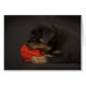 rottweiler cachorro de 1,5 meses de edad está jugando con la bola de hilo rojo