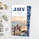 Esta elegante tarjeta de vacaciones para Navidades en formato delgado incluye tu foto favorita y un mensaje de alegría en azul marino clásico y blanco con un toque de arte folclórico escandinavo.