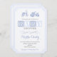 Bloques de alfabeto e imágenes de juguetes vintage decoran estas invitaciones para dar la bienvenida a un bebé.