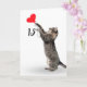 Gato grisáceo con globo de corazón rojo durante 15 años con fondo blanco. El color de fondo se puede cambiar