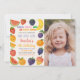 Añade un toque de sol a tu celebración con esta jugosa invitación tropical de cumpleaños. Con gráficos de fruta alegres como piñas, naranjas, limones y hojas tropicales audaces, este diseño vibrante es perfecto para un cumpleaños de verano, un luau o un fiesta con temática de playa. Personalice con facilidad y haga que el fiesta de su hijo sea inolvidable con diversión.