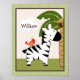 Se vende esta adorable impresión Poster personalizada de Jungle Pals Zebra. Si no lo desea personalizado, sólo puede borrar el cuadro de texto.