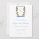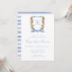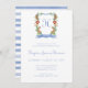 Este adorable niño sorber y ver la invitación sería perfecto para presentar tu dulce recién nacido a la familia y amigos. Tiene un escudo azul monogramado de acuarela rodeado de vegetación y animales de la jungla, el primer nombre y el primer manojo de alegría, y una acuarela azul coordinada a rayas. Es único y precioso.
