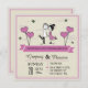 Una invitación linda, del dibujo animado-estilo que ofrece a los recienes casados y una bandera soportada por los globos en forma de corazón. Perfeccione para los fiestas de compromiso, duchas de los pares, casando los fiestas de cena del ensayo, los fiestas del brunch del boda del poste y más.