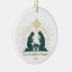 Celebra la fe y la familia con este elegante adorno de silueta de la Natividad. Cuenta con una estrella radiante sobre la Sagrada Familia, personalizada con su nombre familiar y año. La espalda agrega una cálida bendición a los Navidades — un conservador eterno para tu árbol o para regalarlo con amor.