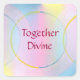 Pintura de un círculo de dos colores sobre un fondo de rosa, azul y amarillo, realzada por software de arte, con la afirmación, Together Divine, impresa en pegatinas.