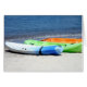 Una fila de kajaks/de canoas en una playa en la isla caribeña de la Santa Lucía.