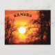 Una toma de un Sunset de Kansas con cielo amarillo y naranja. Eso fue disparado al norte de Hutchinson Kansas en el con la silueta de un árbol en una POST CARD.