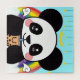 Este diseño tiene un panda con una bebida y un fondo de arcoiris con nubes