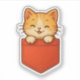 Este adorable pegatina cortado al aire libre cuenta con un sonriente mantel de naranja que asoma a un bolsillo rojo brillante. Con sus grandes ojos felices y su encanto personalizado, este lindo gato es perfecto para decorar laptops, revistas, estuches de teléfono o planificadores. ¡Una necesidad para los amantes del gato y de la moda kawaii!