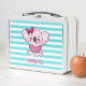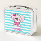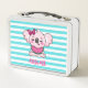 Presentamos la Cute Pink Kawai Koala Watermelon Aquamarine Stripe Metalizado Lunch Box, una mezcla perfecta de lo más adorable y práctico. Esta encantadora lonchera ofrece un divertido bocadillo de koala sobre una sandía, colocado contra rayas blancas y aguamarinas. Personalízalo con tu nombre para un toque único. Ideal para volver a la escuela, esta caja de almuerzos de temática animal, rosa y ondulada, es tan fresca como bonita, haciendo que el almuerzo sea divertido y elegante para todos.