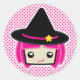 Agradables y divertidos Pegatinas de la bruja Kawaii Pink Haired. Ideal para niños y adultos.