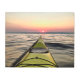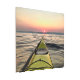 No importa lo estresante que se vuelva el trabajo cotidiano, la vida se siente diferente de a bordo de un kayak, especialmente durante un pádel al atardecer. El ritmo de los remos, el ejercicio saludable de remar y el arrollamiento del agua son un gran reinicio del trabajo, el tráfico o cualquier otro factor estresante que uno pueda tener. Esta fotografía original, desde la perspectiva de un kayaker en las Islas San Juan del Estado de Washington, es tratada con efectos digitales de manera pintoresca. Esta metalizado obra de arte, basada en una foto original tomada de un viaje en kayak, intenta capturar ese momento de paz al atardecer.