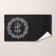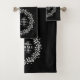 Tipografía con caligrafía de floral Tipografía Monograma Baño conjunto toallas en blanco y negro - Diseño monocromático de toalla de baño en blanco y negro para una pareja recién casada que presenta un monograma personalizado, nombres de novio y novia, apellido y plantillas de fecha boda rodeadas de una corona de arte floral auta. Un delicioso regalo de mantenimiento para el fiesta o regalo de boda de la pareja. ©sweetwhimsypaperie