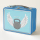 A kettlebell with angel wings and a halo