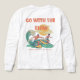 This is a design of the written words LESSONS LEARN at the front and the written words GO WITH THE FLOW at the back with men surfing the waves and written quote below.