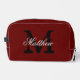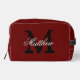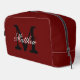 Kit de bolsos de viaje para inodoro rojo con monograma de personalizado. Plantilla de tipografía clásica con letra inicial vintage y texto de script. Los colores se pueden cambiar. Idea de regalo de cumpleaños de Guay o Día del Padre para hombres.