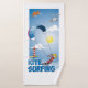 Val op op het strand of geef je badkamer extra kleur met deze badhanddoek met opvallende en kleurrijke “Kite surfing” illustratie. De afbeelding is ontworpen door de Belgische illustrator en cartoonist Stef Ringoot
