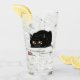 El gato negro está a punto de saltar y hacer la "maniobra de gatitos". Ratón de juguete cerca del gato negro.