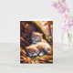 Adorable gatito dormido y cachorro en una pradera en un día de otoño en esta tarjeta de saludo en blanco.