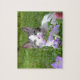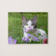 Tigre de bonito y gatito blanco y petunias rosadas/púrpura en este rompecabezas