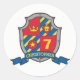 Caballeros medievales escudo nombre pegatina ideal para embellecer los objetos de fiesta de cumpleaños de los caballeros. Personaliza con tu propio nombre y edad de cumpleaños, actualmente dice Christopher 7. © león, arte de escudo de la corona y diseño de Sarah Trett para www.mylittleeden.com
