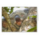 Esta tarjeta de nota muestra un adorable oso koala echando una siesta en un árbol en Australia