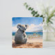 El icónico Koala australiano tomando el sol y el mar en una playa de arena con un cielo azul claro Saludo navideño al frente Feliz Navidad y Feliz Año Nuevo al revés . Este polvoriento koala es un nativo de Australia, son fácilmente reconocibles por su cuerpo sin sastre y su gran cabeza con orejas redondas, onduladas y una nariz grande en forma de cuchara.