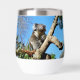 En la parte superior de un árbol viejo se ve un oso Koala que parece estar reflexionando sobre qué camino tomar