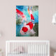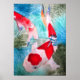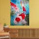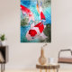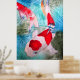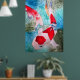 Con un diseño de una pintura acuarela original de la artista australiana Sacha Grossel de dos peces japoneses ornamentales Kohaku rojos y blancos Koi que nadan en un estanque fresco y aguamarino con efectos en el agua. Este colorido y vibrante poster de arte está inspirado en el arte japonés y asiático y es para los amantes del pescado o del Koi por todas partes.