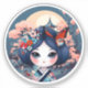 kokeshi con paisaje azul, pegatina kokeshi