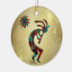 Personalice este "One of a Kind" (Un tipo de cosa) Ornamento de Navidad del Suroeste. Se presenta un Kokopelli del suroeste tocando flauta bajo la luna en un fondo de oro para Navidades! Diseño De Arte Original Del Artista Kerry Miller.