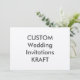 El personalizado personalizó las invitaciones de la boda de KRAFT - 7" x 5". Este papel delicioso del tono de la tierra tiene un final maravillosamente liso de la textura. Respetuoso del medio ambiente, Kraft se hace en un molino poseído familia con la energía renovable 100%. contenido del poste-consumidor del 30% (reciclado). HECHO EN LOS E.E.U.U. 100lb tarjeta, tarjeta gruesa de 14 puntos.