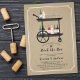 Bar moderno Cart Stock Bar Couples Shower Invitation con un elegante carrito de bar con botellas de licor y vino y vasos de bebida sobre un popular fondo kraft con un costado a juego.