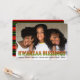Expresar sus deseos de Kwanzaa a la familia y amigos con esta tarjeta de vacaciones de personalizable. En el anverso aparecen las palabras "Bendiciones de Kwanzaa" en tonos rojos, verdes y dorados amarillos. Personalice directamente debajo de estas palabras con su propio mensaje y nombres utilizando la plantilla fácilmente proporcionada. Entonces simplemente reemplace la foto de ejemplo con su propia foto familiar. En la parte trasera hay un patrón de rayas audaces en negro, verde, rojo y amarillo dorado. Revisa mi tienda para encontrar etiquetas de dirección de retorno coincidentes y suministros de fiesta!