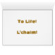 La frase hebrea congratulatoria, "chaim de L", se muestra en caracteres hebreos así como en la transcripción entre dos árboles jovenes simbólicos