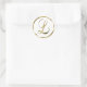 L Monograma Faux Gold Envelope O Sello Favor. Estos pegatinas redondos clásicos están impresos con tinta no metálica en un pegatina plano para que parezca oro. No son biselados ni monogramos grabado en relieve, pero están diseñados para parecer biselados o monogramas grabado en relieve. Estos sellos monográficos dorados se imprimen sobre un fondo blanco a menos que seleccione un fondo de color diferente antes de proceder a la desprotección. Además de ser artículos de papelería para bodas bonitos, estos elegantes sellos para sobres de invitación a la boda también hacen grandes sellos de tarjetas para personalizados monogramados, pegatinas de sello para sobres de tarjetas de felicitación de vacaciones personalizadas y pegatinas de sellos monográficos de tarjetas de Navidad personalizadas.