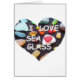 El corazón de cristal del mar con palabras "AMO EL VIDRIO del MAR"