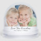 Un globo de nieve se mantiene para la mejor abuela que alguna vez haya presentado dos fotos de su nieto o nietos, "Te amo abuela" en un guión elegante y sus nombres y el año u otro texto con letras simples.