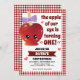 La invitación al cumpleaños de Apple of Our Eye Chica - Ahora tenemos información secreta "en sidra" para todos ustedes. Permítannos presentar esta impresionante y muy "desconcertante" invitación de cumpleaños a su chica. Con una pequeña y amigable manzana de caramelo con la frase manzana de nuestro ojo. En el fondo, una estampada de cuadros vivos, inspirada en un mantel de picnic. Disfruta de tu pequeño espectáculo de cumpleaños con esta invitación tan fresca y briosa.