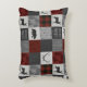 Diseño de mosaicos llenos de elementos rústicos de bosque en rojo, gris y negro. ¡Cerveza, oso, flechas y árboles! ¡Aventura espera!
