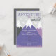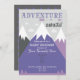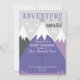 Aventura personalizada espera, montañas Baby Shower invitación imprimible en gris oscuro, morado oscuro y morado claro.