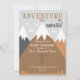 Aventura personalizada espera, montañas Baby Shower Invitación imprimible en gris, marrón oscuro y marrón claro.