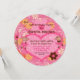 ¡Una invitación adorable del cumpleaños en forma circular redonda con las porciones de rosa, de corazones, de flores, y de pequeña bailarina monkeys con áreas que usted puede añadir fácilmente todos sus específicos de la fiesta de cumpleaños!