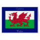 La bandera de País de Gales en un fondo azul marino. País de Gales imprimió en inglés y galés.