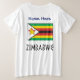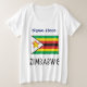 Bandera de Zimbabue con la palabra ZIMBABWE abajo en letras negras. La bandera es roja, dorada, verde negra y blanca. Un lugar para añadir tu nombre te permite darle un toque personalizado. Si prefiere crear un regalo personalizado, agregue el nombre de otra persona.